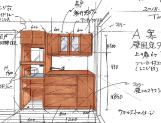 電化製品がカウンターの上に並んでいてカウンターが使えなくて困っているとしたら、「じゃあこうしたら?」と分かりやすいスケッチを描いて具体的なアドバイスをします。